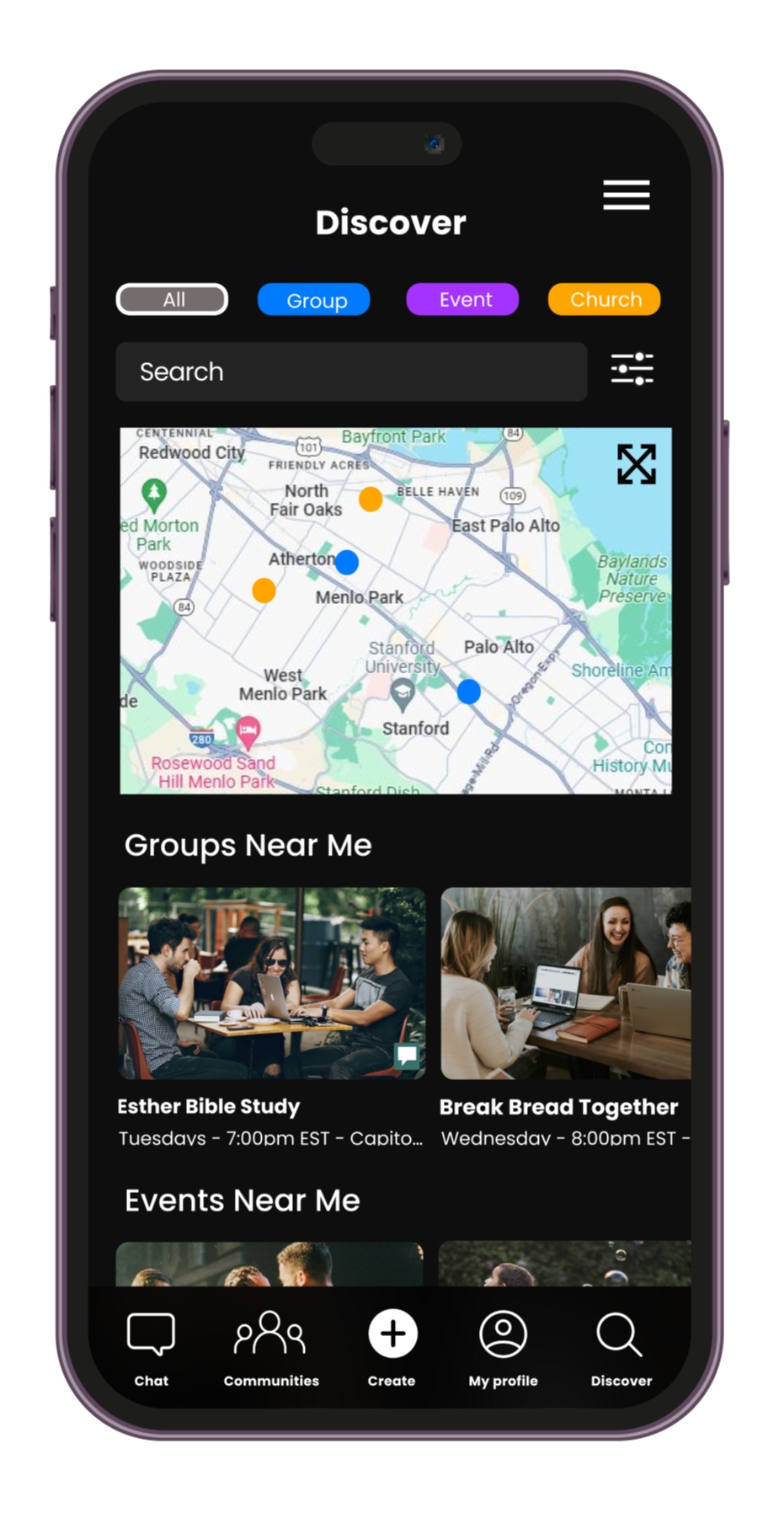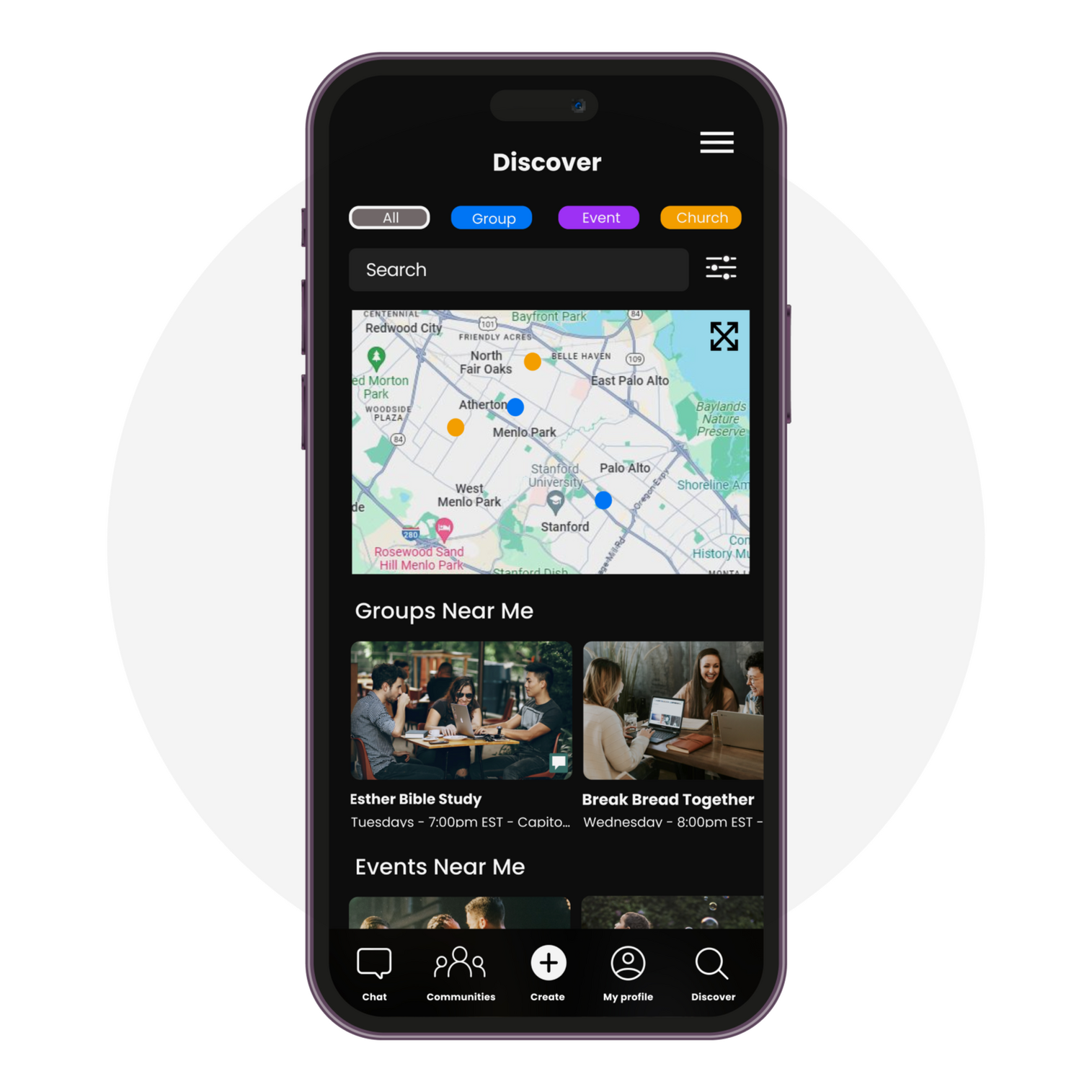 Jesus Community is a social platform that allows you to find churches, small groups, Bible studies, and more in your neighborhood.